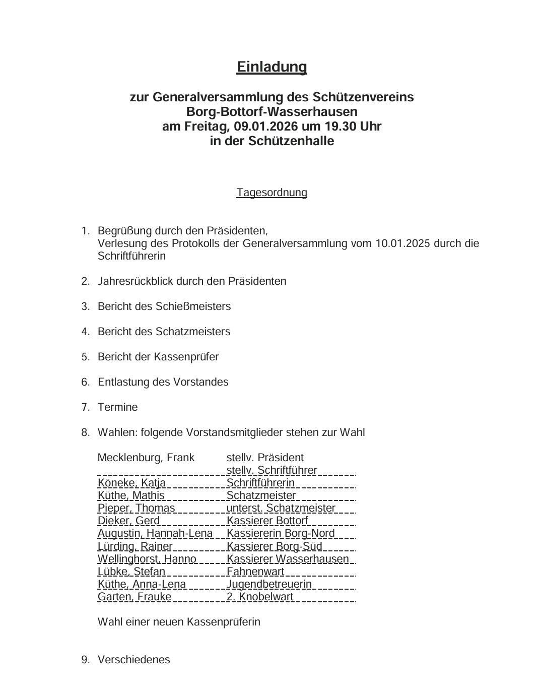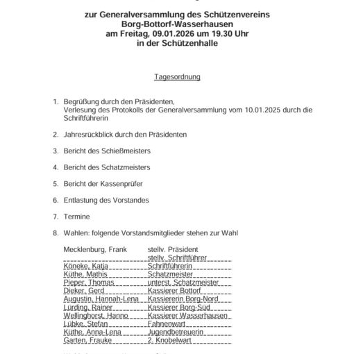 Liebe Schützenschwestern, liebe Schützenbrüder, liebe Freunde des Vereins,